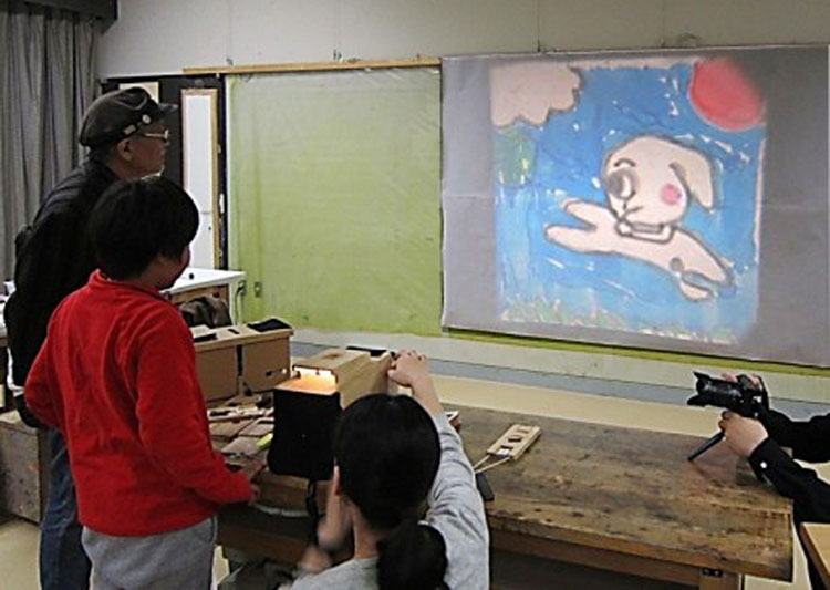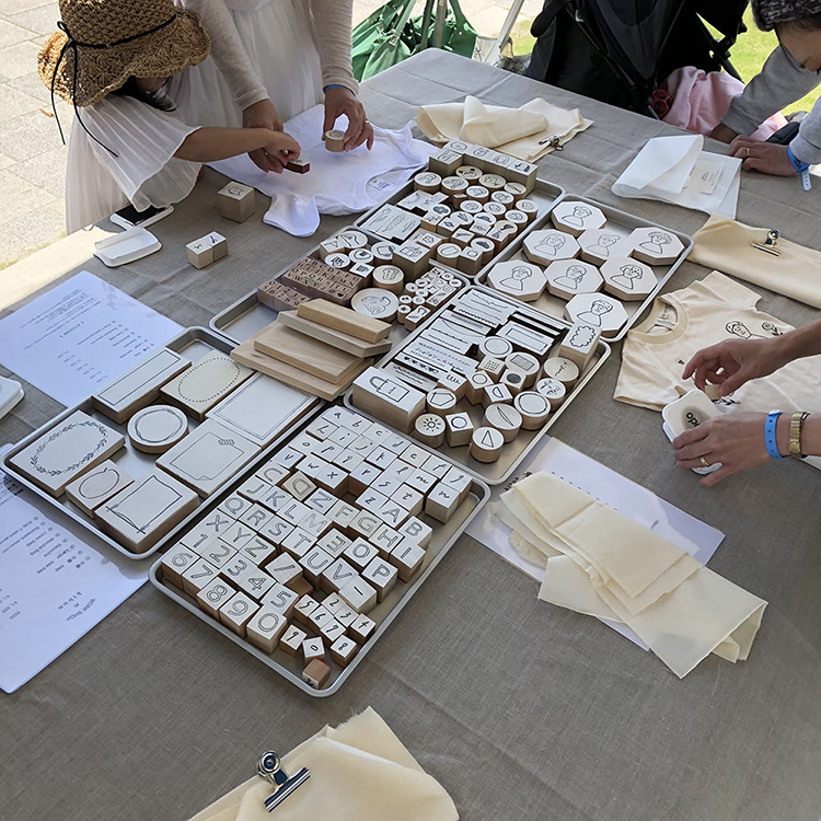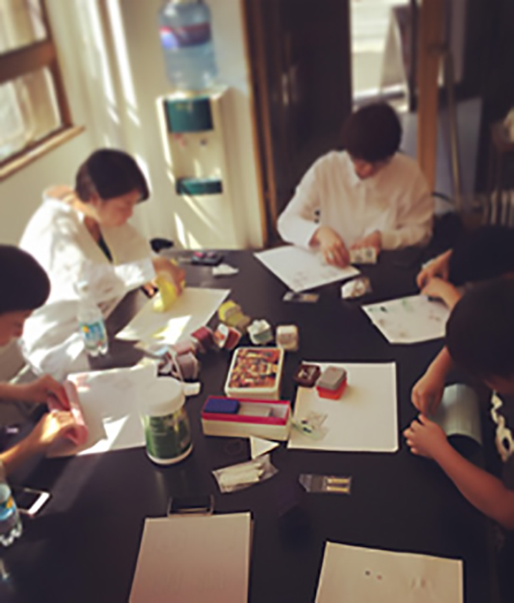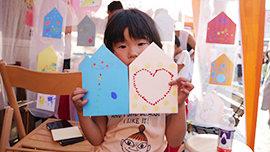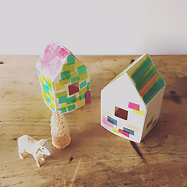 ステンシル版画で装飾した封筒を小さな家に見立て、他の地域から来た家とと自分で作った家を交換するワークショップです。小さな子どもから大人(現在参加は2歳から90歳)まで参加できます。