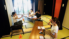 【 きき茶 】数種類のお茶を試飲してペットボトルのお茶と急須で淹れたお茶を分けるクイズの後、全員が実際に茶葉を使ってお茶を淹れてみよう!ポイントを押さえればとっても簡単に美味しいお茶を淹れることができるよ。一緒に家族や自分好みのお茶をいれてみよう。
