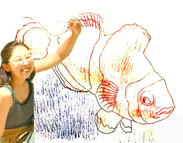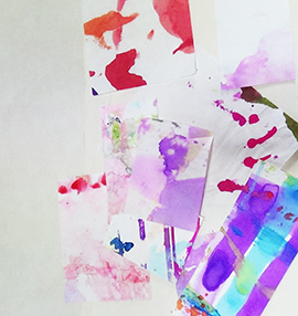 いろんな味を含みながら、何も考えずに無心になり、直感で日本画絵具を和紙に置いていくスタイルです。論理的思考から外れ、直感的に心に浮かんだ言葉を繋げて遊びます。思いがけない自分に出会えるかもしれませんね。
