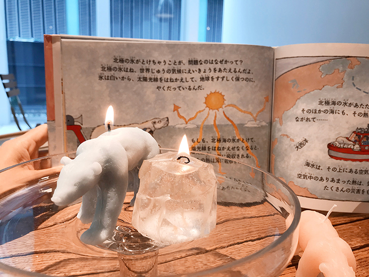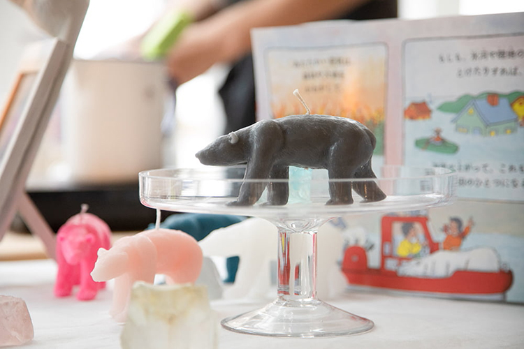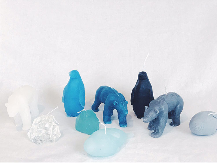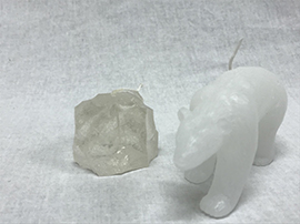 キャンドル用の色粉でご自身で色を作り、シロクマのキャンドルを作ります。氷山キャンドルの色は3色の中から選んでいただきます。