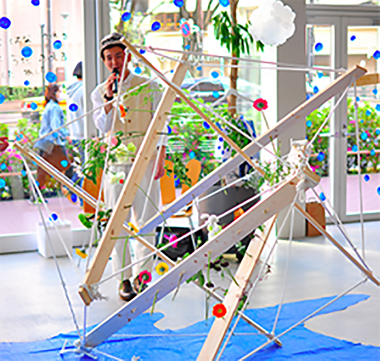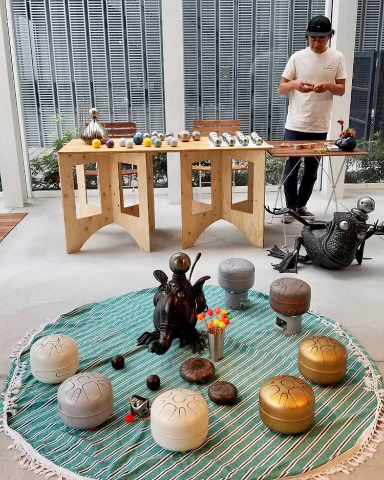 鉄彫刻家 飯田誠二 による鉄の楽器 sei を触れて奏でてコミュニケーションとその空間を感じてもらう。