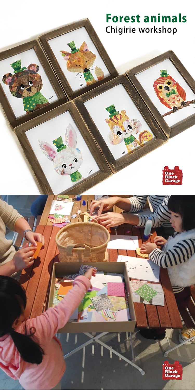 動物が描いてある台紙に自分で選んだ色紙や雑誌のページをちぎって・貼って、額に入れて完成です。小さいお子様からおばあちゃんまで、どなたでも簡単に作ることができます。