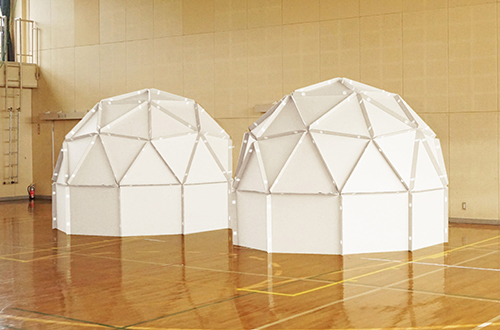 ワークショップで作った作品や、古着プールの中にある服をリメイクして組み合わせて、ドームの中で大変身!装う、まとうことをたのしみながら、自分や、お友達をスタイリングしてみよう。