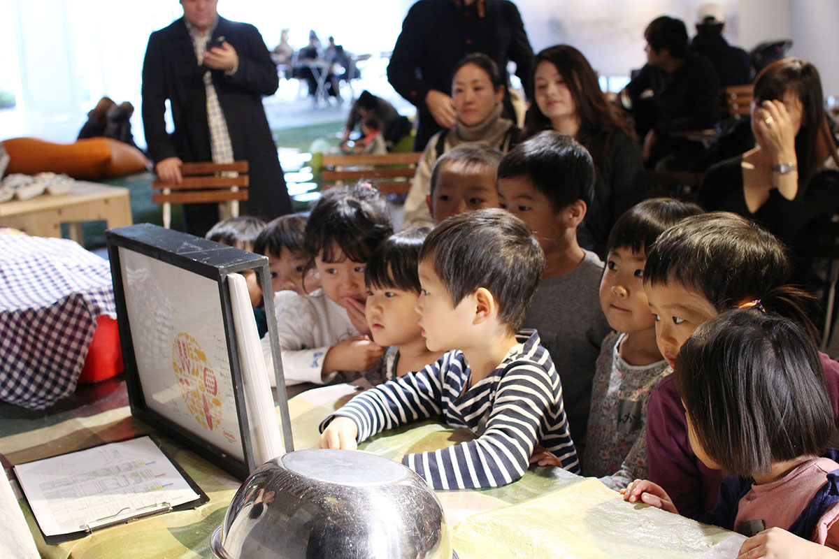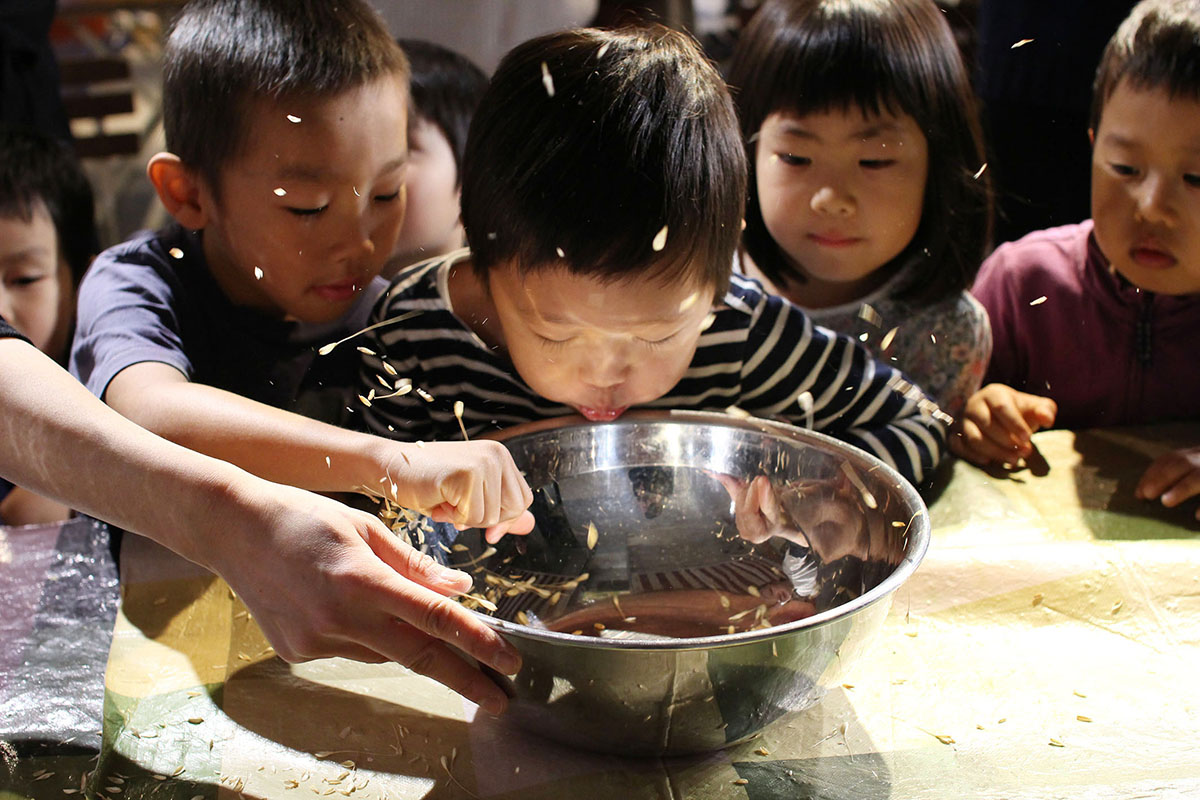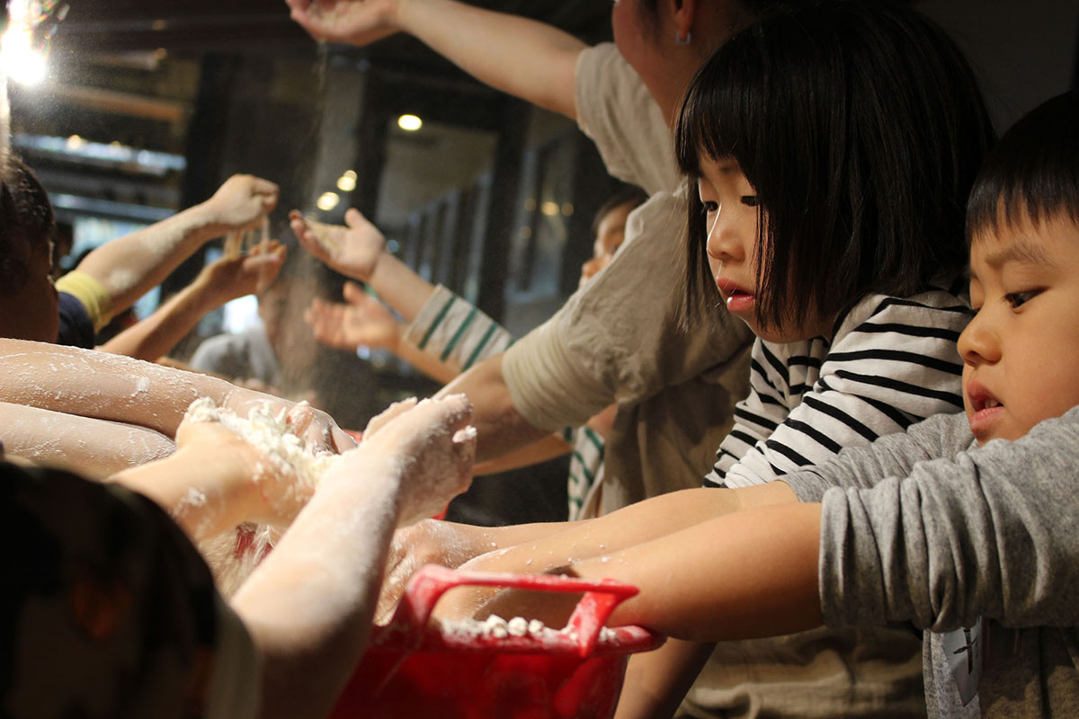 「麦ってなに?」から始まる『食』の授業。麦が『小麦粉』になる過程を想像し、実際に触りながら学んでいきます。意外と知らなかったことがたくさんあり、子どもだけでなく大人も思わず夢中になっている様子でした。授業の後に食べるパンには、どことなくいつもより麦の香りが。
